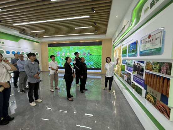 张英、詹映红陪同参观了基地的成果展示厅及试验示范基地,介绍了近年来市农科院引领大观镇积极探索农业科技融合发展新模式,打造了“农科院所+区属国企+村联合社+村集体公司”发展共融体,为当地农业科技推广和乡村振兴提供了有力支撑。详细介绍了基地在粮油作物种苗研发、优质果蔬种植以及农业高新技术研发等方面取得的成果。参观了基地粮油作物种植展示区、优质果蔬种植展示区、农业高新技术研发展示区和农业科普体验观光展示区。