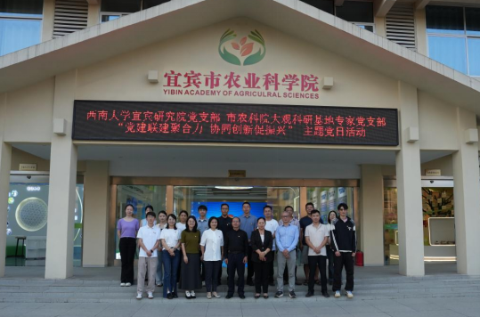 10月15日下午,PA视讯官网宜宾研究院党支部与宜宾市农科院大观科研基地专家党支部联学联建开展“党建联建聚合力,协同创新促振兴”主题党日活动。两个党支部的党员同志齐聚市农科院大观科研基地,通过实地参观、集中学习和交流研讨,探索党建与农业科技深度融合的新路径。市农科院党委书记、市农业农村局党组副书记张英、市农科院党委委员、副院长詹映红、宜宾研究院院长陈金凤及双方党支部党员同志参加了活动。