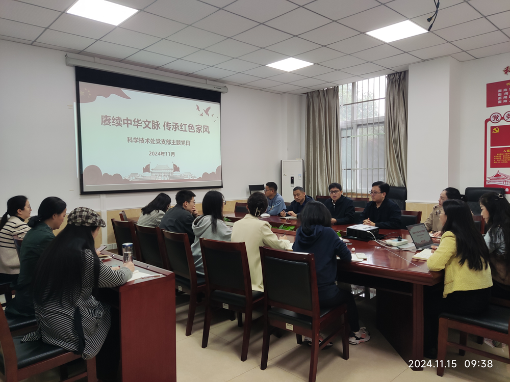 按照学校机关党委的工作要求,结合本支部实际工作安排,科学技术处党支部于2024年11月15日上午,在南区行政楼A109会议室开展主题为“赓续中华文脉 传承红色家风”的主题党日活动。党支部邀请机关党委委员万劲同志指导本次主题党日活动。此次活动由党支部书记段有德同志主持,平台办负责导学,分为两个阶段开展。