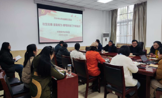 2024年2月28日下午,按照机关党委的工作安排,科学技术处党支部在南区行政楼A109会议室开展了以“攻坚克难 奋发有为 续写科技工作新篇章”为主题的主题党日活动。支部书记段有德同志主持本次活动,高新技术办公室进行导学。