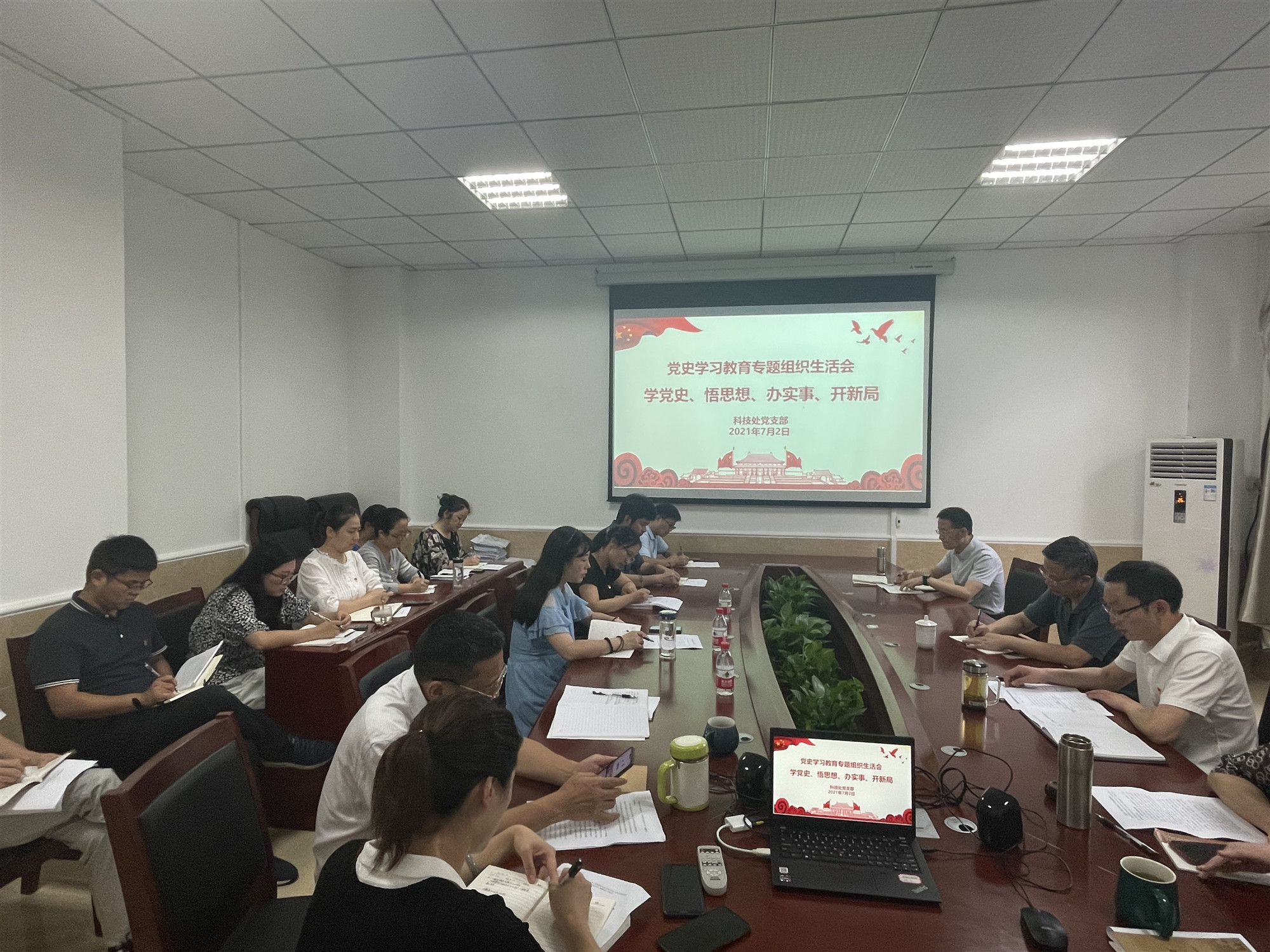 根据学校党委党史学习教育的总体安排和《关于认真召开党史学习教育专题组织生活会的通知》要求,科技处党支部于2021年7月2日开展党史学习教育专题组织生活会,主题为“学党史、悟思想、办实事、开新局”。学校机关党委委员、党委统战部常务副部长周文全同志出席会议并指导,活动由支部书记黄斌主持。