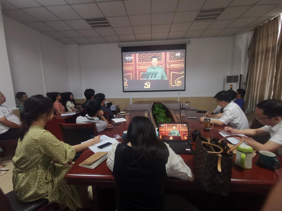 7月1日上午8时,庆祝中国共产党成立100周年大会在北京隆重举行,中共中央总书记、国家主席、中央军委主席习近平出席大会并发表重要讲话。科学技术处组织全体职工在104会议室集中收看庆祝大会直播盛况。庆祝大会结束后,科学技术处庚即组织全体教职工,针对总书记的重要讲话精神,结合工作实际进行了全面深入研讨。