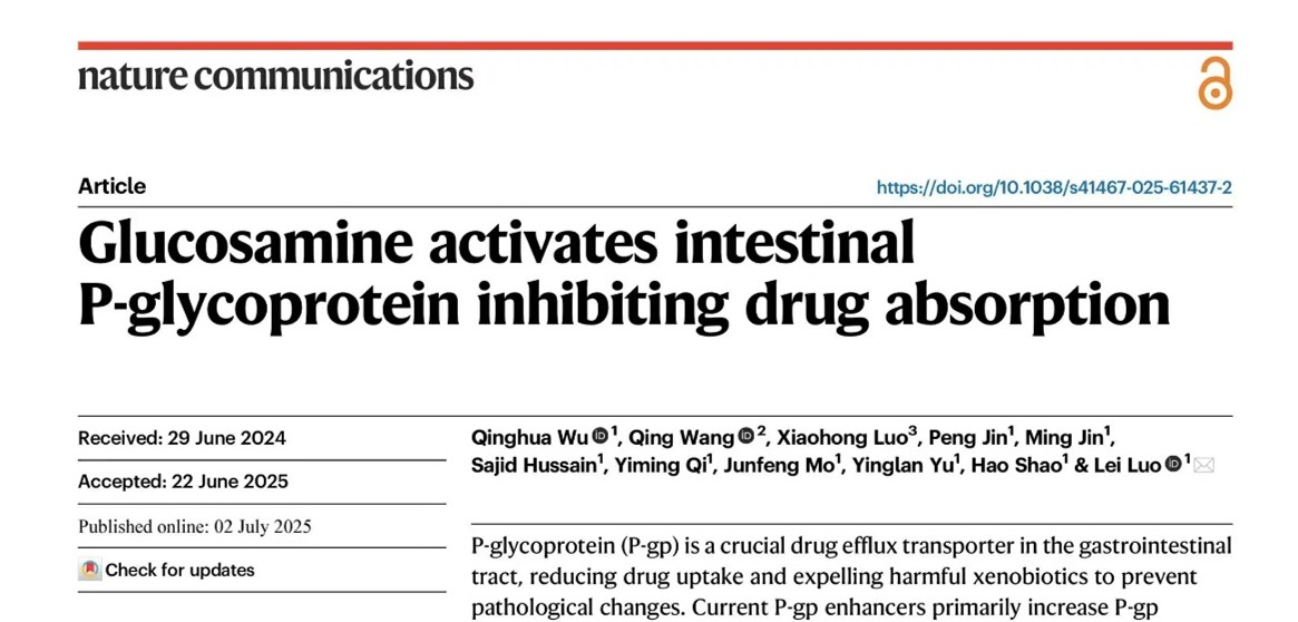 近日,药学院 中医药学院罗雷教授团队在《自然》(Nature)杂志子刊《自然通讯》(Nature Communications)上在线发表了题为《氨基葡萄糖激活肠道P-糖蛋白抑制药物吸收》(Glucosamine activates intestinal P-glycoprotein inhibiting drug absorption)的研究论文,首次揭示了壳寡糖的聚合度对其促吸收和抑制吸收机制的决定性作用。