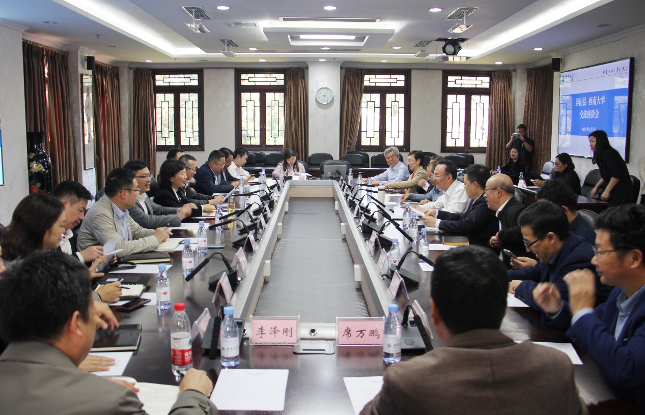 11月1日下午,宜宾市屏山县委副书记、县长赵丹,县委副书记李小图,县委常委、副县长顾建忠,县政府党组成员、副县长李劲松和李育生等一行来校推进县校合作。学校副校长王志坚出席并主持座谈会。