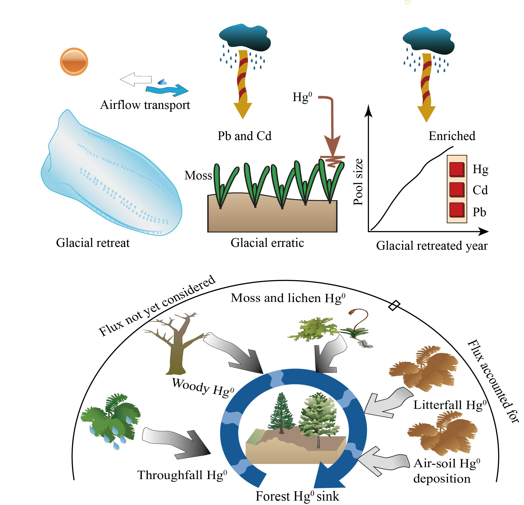 冰川退缩区是地球表层系统中最活跃、最富有活力的部分之一,冰川退缩区的矿物质丰富, 原生裸地植被演替迅速,土壤发育碳积累过程明显。冰川退缩区形成的植被演替序列,是研究陆地生态系统汞循环对全球气候变化响应机制的一个绝佳天然平台。王训教授在传统化学计量的观测研究基础上,联合天然汞同位素技术、年轮化学技术,详尽论述了汞、镉、铅等重要重金属污染物在海螺沟、明永及米堆等冰川退缩区的生物地球化学过程。
