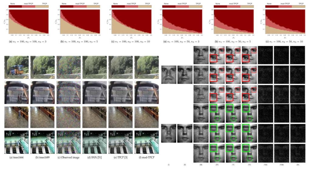 在图像处理、模式识别和计算机视觉等应用中,数据的载体常常是维数极高且蕴含更多复杂信息的高阶低秩张量。为了从观测数据中提取关键信息用于恢复真实的信号,我们需要学习张量的低秩结构(奇异值的稀疏性)。张量鲁棒主成分分析(TRPCA)是处理这种任务的有效方法之一,然而在实际应用中这种方法需要满足一些相对严格的不相干性条件。如何弱化这种不相干性条件且同时提高张量恢复的精度是一个十分有价值的研究问题。该文提出将张量数据流中部分干净数据的行空间和列空间知识作为待恢复张量数据的先验信息,然后基于新近发展的张量奇异值分解(t-SVD)方法提出了耦合子空间先验的不相干性条件和优化模型,并利用概率集中不等式和对偶验证等工具建立起了相应的模型理论结果,证实了子空间先验信息不仅可以提升张量数据的重建质量,而且能够明显弱化相应的恢复条件。该方法在视频去噪和人脸去噪等实际应用任务中获得了远超经典算法的重构精度,并且在地理测绘、医疗诊断、安防监控等大数据领域有着广 泛的应用前景。