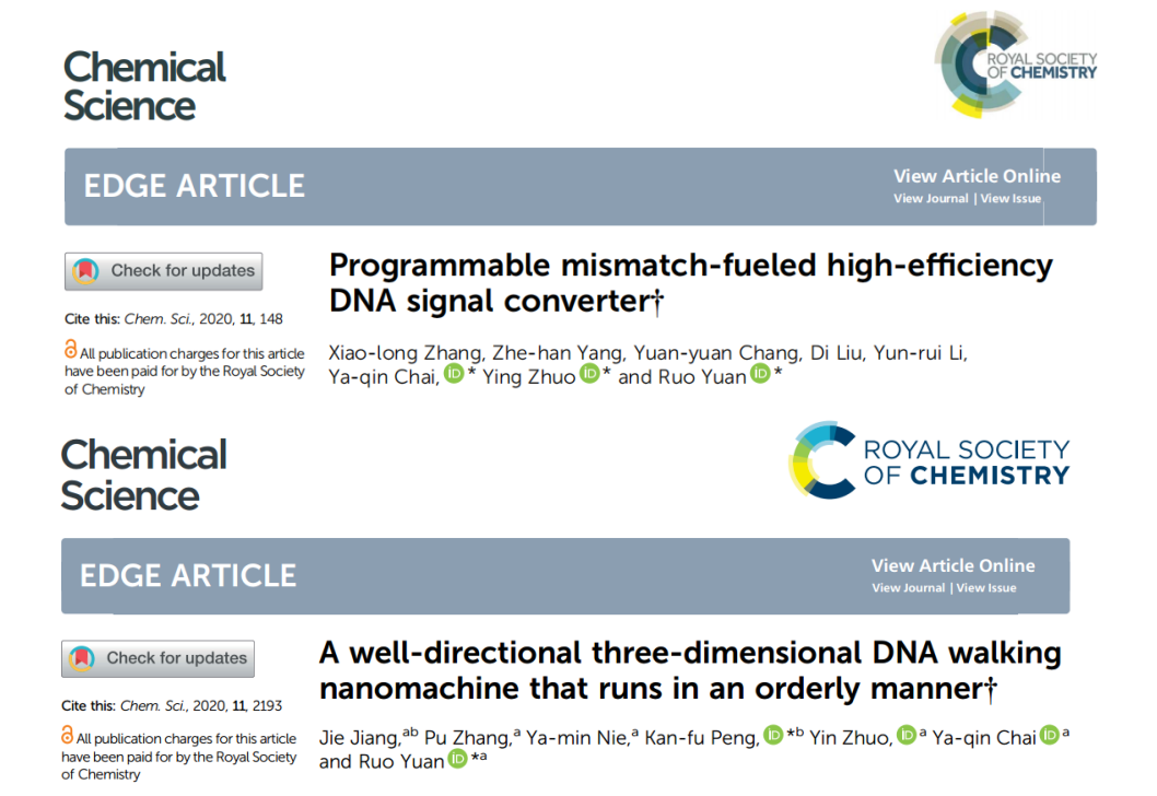近日,我校化学化工学院袁若教授团队在动态核酸结构方面取得了重要进展,两篇相关工作连续发表于国际知名学术期刊《Chemical Science》。