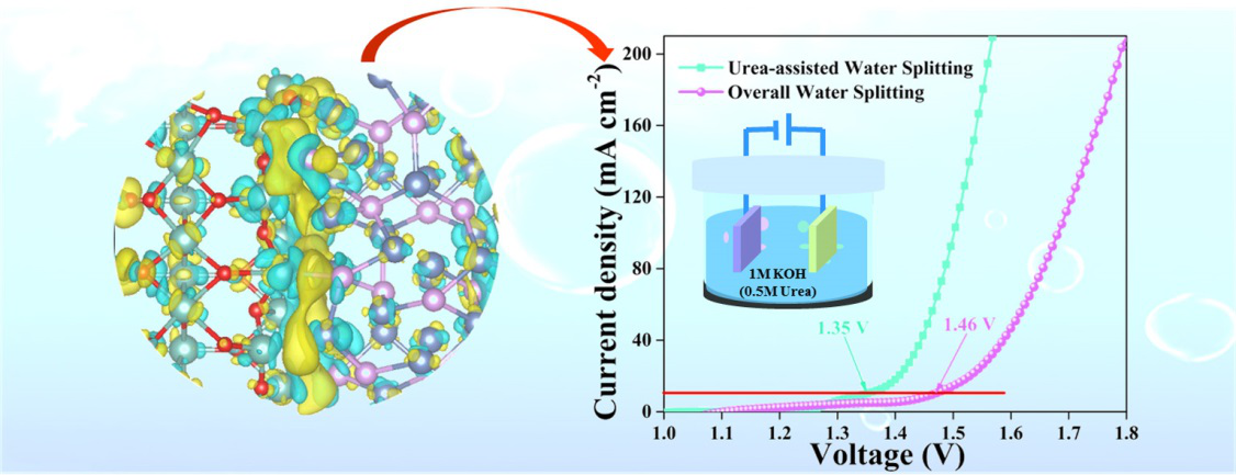 从化石燃料经济向氢能源经济转变需要高效的制氢技术,目前电解水制氢是最具应用前景的制氢方法。但是在电解水制氢过程中,阳极析氧反应动力学过程缓慢,使得反应过程需要较大的电极电压驱动反应进行。因此,该课题组采用阳极氧化电位较低的尿素分子取代反应动力学慢的水分子,不仅大幅降低了电极电压,而且能够通过降解其中的尿素实现废水净化。