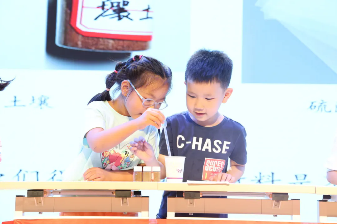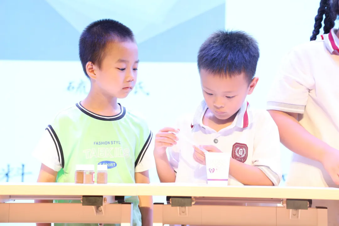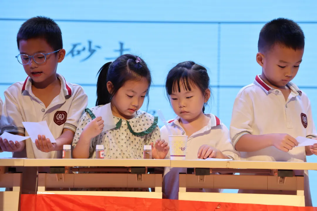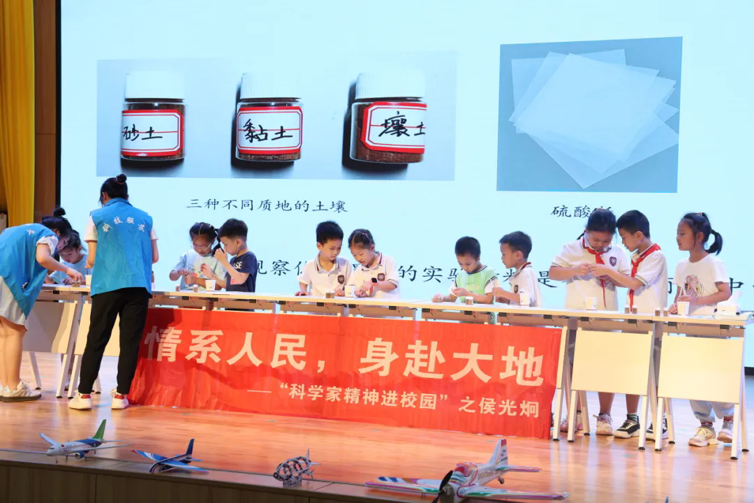 将气氛推到高潮的是讲座中讲师与我校学生进行的实验互动。在进行土壤测试实验环节时,同学们积极举手自荐,化身“小小科学家”体验侯光炯院士研究工作的一环:去摸一摸,感受土壤外部特征;去揉一揉,比较土壤粘性;去猜一猜,比较土壤的渗水性。同学们在实验中认识了不同质地的土壤,学会找到不同场景适用的土壤。趣味小实验激发了同学们对科学的兴趣并鼓励他们在实际生活中运用科学。
