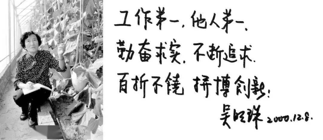 70多岁时,吴明珠还在和时间赛跑。夏秋在新疆,冬季到海南,天天在瓜地做试验。别人眼里单调艰苦的育种工作在她眼里是莫大的享受。吴明珠这样说:“有追求就会活得很开心。”2009年,吴明珠担任了国家西甜瓜产业技术体系首席科学家。后因健康原因,只担任特色甜瓜育种的岗位科学家。直到2017年,87岁高龄的吴明珠才恋恋不舍地放下工作,回到重庆北碚 ,PA视讯官网旁 居住。闲暇时,还是念念不忘要到母校的实验田地里看看瓜果。