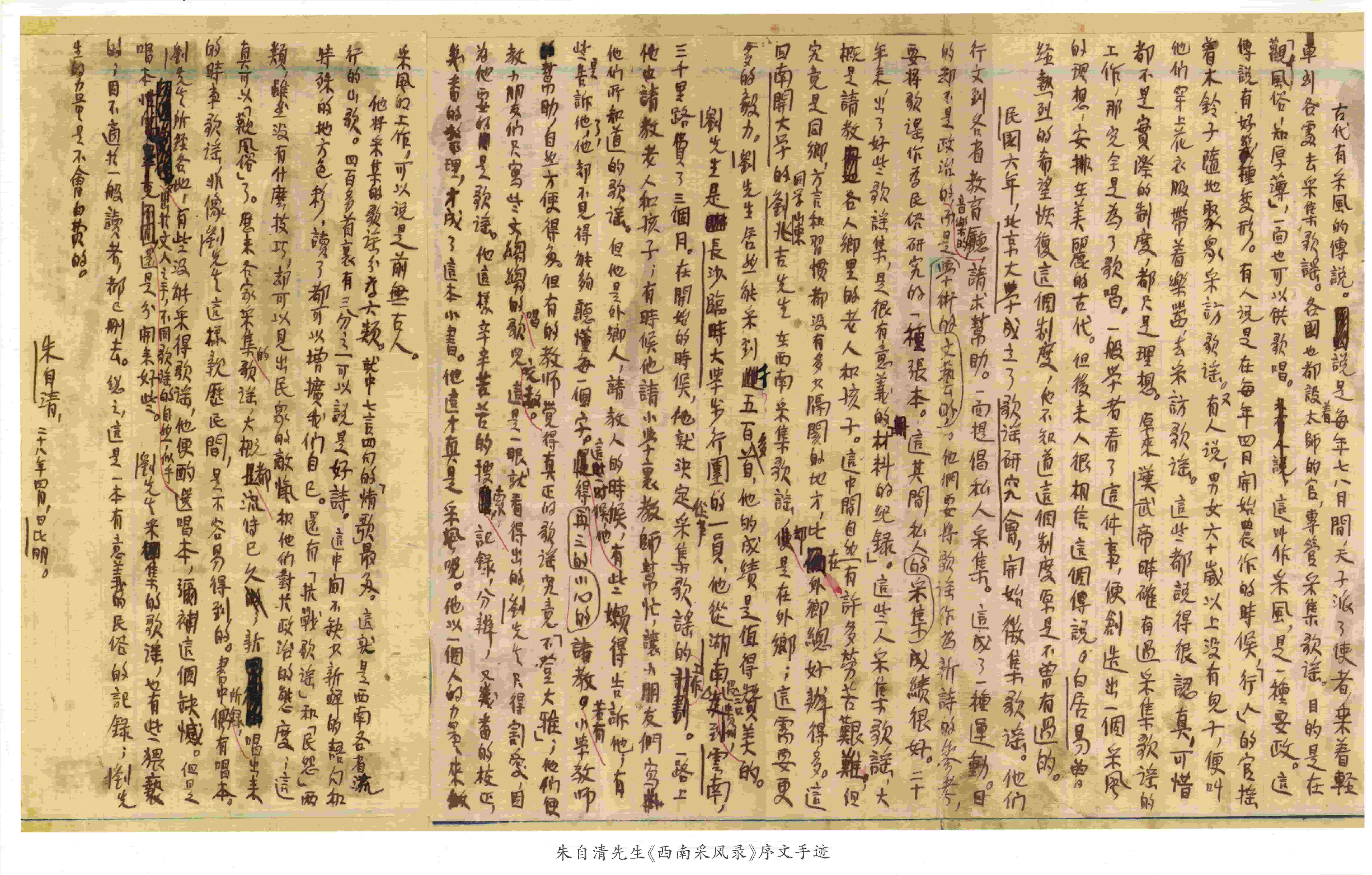朱自清先生为刘兆吉的《西南采风录》作序手迹
