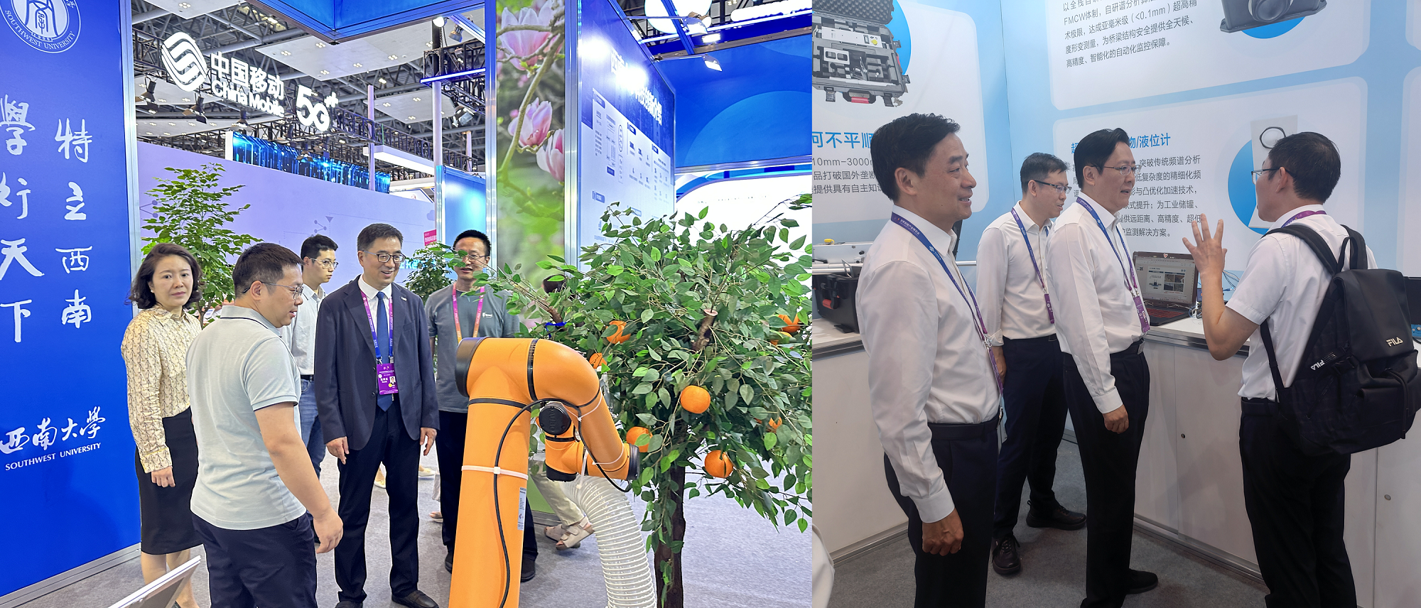 9月5-8日,由重庆市人民政府、天津市人民政府共同主办的2025世界智能产业博览会(简称“2025智博会”)在重庆国际博览中心成功举办。我校作为受邀单位,在本届智博会上通过实物展示、影像资料、展板介绍等多种形式,围绕智博会主题集中展示了智能农机、钢轨几何不平顺检测仪、智能雷达技术应用、柑橘智能采摘机器人、智能装配机器人、3D打印电池以及智慧教育解决方案等13项科技成果,展览期间吸引了大量专业观众与合作伙伴驻足交流,受到新华网、重庆日报、重庆卫视等多家媒体报道关注。