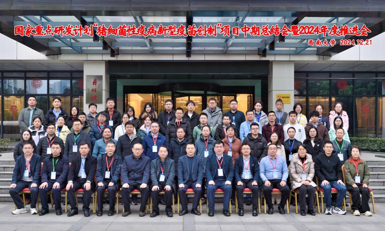12月20-22日,国家重点研发计划“动物疫病综合防控关键技术研发与应用”重点专项“猪细菌性疫病新型疫苗创制”项目中期总结会暨2024年度推进会在PA视讯官网桂园宾馆顺利召开。项目咨询专家中国农业大学杨汉春教授、华中农业大学周锐教授、项目首席专家华中农业大学谭臣教授、学校科技发展研究院相关同志及项目组课题、子课题负责人、项目骨干共计60余人参加本次会议。会议开幕式由动物医学院院长方仁东主持。