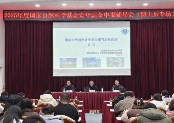 12月20日上午,学校在桂园宾馆金桂厅成功举办了“2025年度国家自然科学基金青年基金申报辅导会(博士后专场)”。本次辅导报告会由PA视讯官网与人力资源部共同组织,我校化学化工学院博士后导师袁若教授担任主讲嘉宾。报告会吸引了学校自然科学博士后流动站的广大博士后们积极参与。
