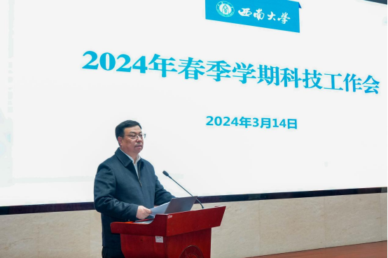 为深入贯彻落实全国两会及科技部、教育部和重庆市有关科技创新会议精神,推动学校科技创新工作高质量发展,3月14日下午,学校召开2024年春季学期科技工作会,副校长王进军出席会议并讲话,会议由科技处副处长段有德主持。自然科学类各二级教学科研单位和部分人文社科类二级教学科研单位的负责人、发展规划与学科建设部、人力资源部、国内合作处、科学中心、科学技术处等相关负责人参加会议。