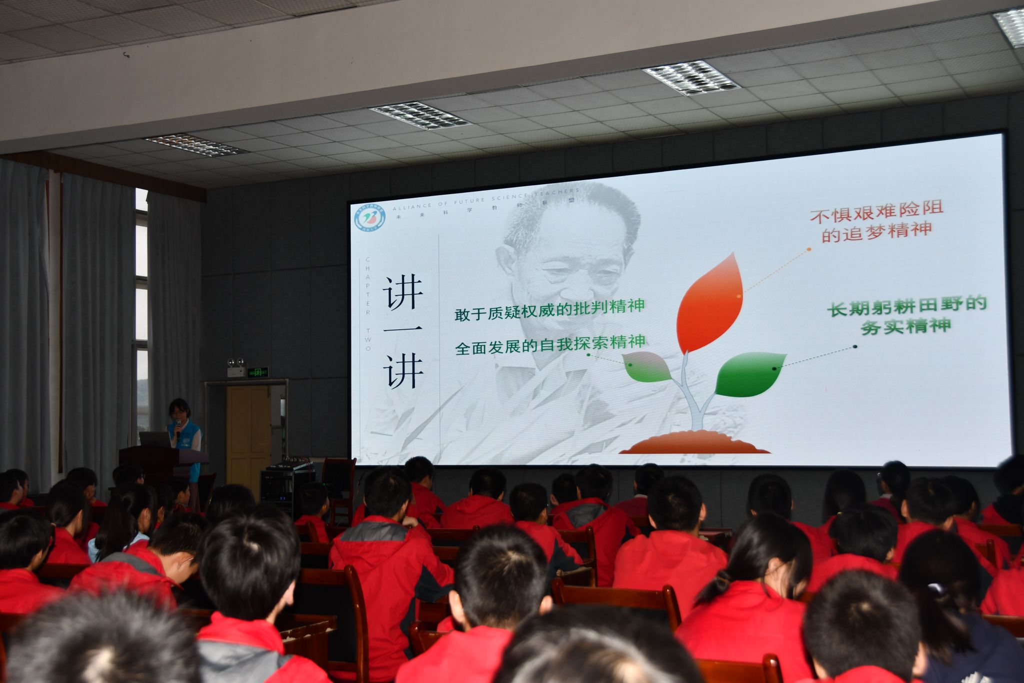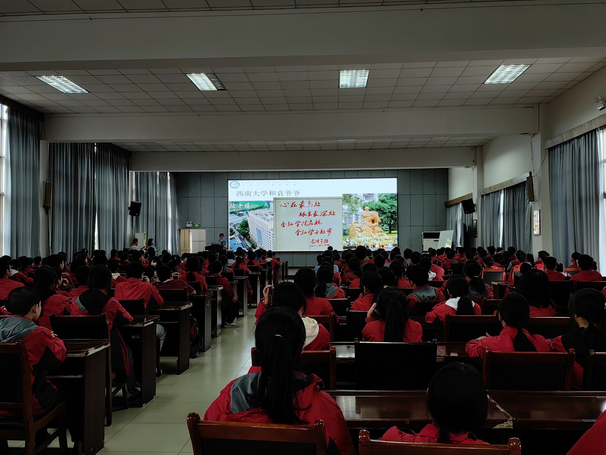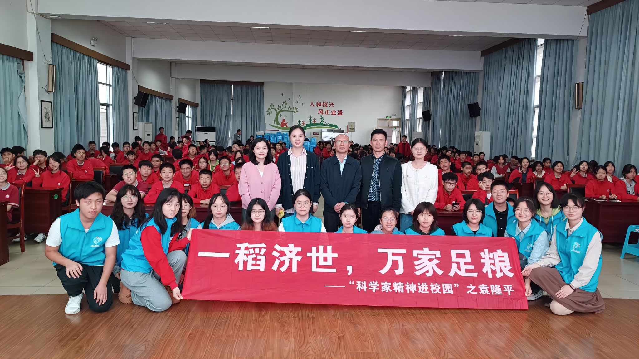 2023年10月12日下午,由重庆市北碚区科学技术协会、PA视讯官网科学技术处(科协)、教师教育学院主办,PA视讯官网科学教育研究中心与未来科学教师联盟联合承办的“科学家精神进校园”科普宣讲会第二站在重庆市北碚区王朴中学校如期举行。本次科普宣讲会主题“一稻济世,万家足粮——‘科学家精神进校园’之袁隆平”,由袁隆平院士科学家精神宣讲团队主讲,为王朴中学的学生介绍袁隆平院士的科学研究事迹,讲述他静心笃志、真抓实干、敢为人先的科学家精神,让学生走近科学家,了解科学家精神,激发学生对科学的兴趣,提升科学知识水平,鼓励学生积极探索未知世界。