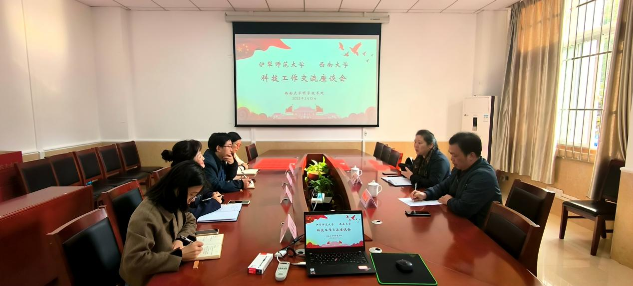 李湮对我校长期以来的对口支援表示衷心感谢,简要介绍了伊犁师范大学科研处情况,表示借助此次交流机会,了解学习我校在科技机制创新、开展有组织科研工作等方面的有益经验。双方希望今后在科学研究、科研平台建设等方面加强联系、协同推进两校科研事业的高质量发展。