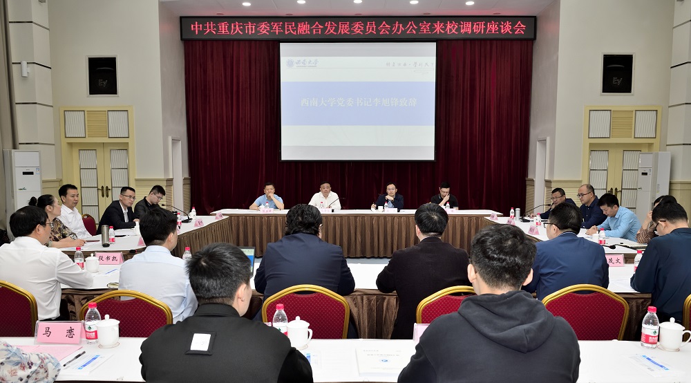 5月17日上午,中共重庆市委军民融合发展委员会办公室副主任马奇昌带队来校调研,军工处处长吴杰、军工处副处长陈昌涛、军工处调研员苟思,学校党委书记李旭锋、副校长崔延强陪同。党政办公室、科学技术处、材料与能源学院、蚕桑纺织与生物质科学学院等单位负责人和部分专家参加本次调研。