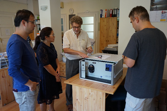 8月23日,中方代表团在匈牙利国家农业研究与创新中心食品研究所所长Dr. Nóra Adányi-Kisbocskói女士陪同下参观了匈牙利MicroV后续acuum公司,公司经理Dr.Istvan Szendro为代表团详细介绍了该公司的主打产品OWSL仪器的检测原理、操作方法和应用范围。该仪器应用广泛,特别适合食品安全方面的快速和灵敏检测,如能引进,对中匈食品科学联合研究中心的进一步发展助益颇大。