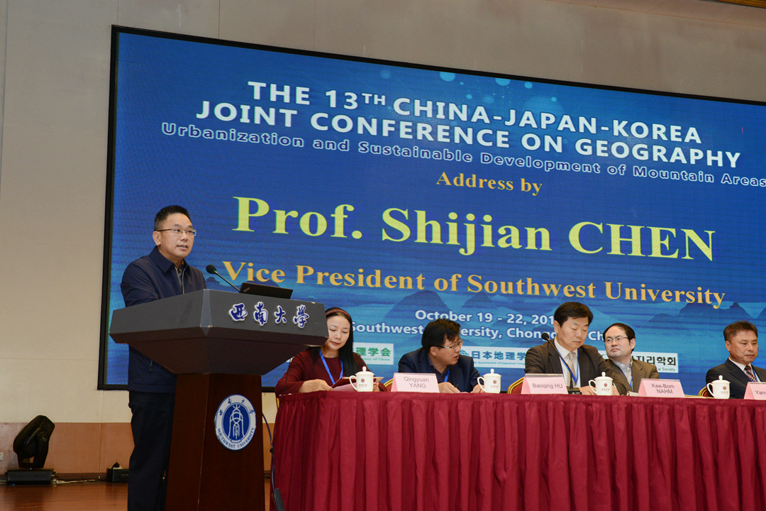 10月19-22日,第十三届中日韩地理学国际研讨会在学校召开。本次研讨会由中国地理学会和学校联合日本地理学会、韩国地理学会共同主办,学校地理科学学院、重庆地理学学会承办,广西师范学院北部湾环境演变与资源利用教育部重点实验室协办。日本东京大学、韩国国家农业科学研究所、巴基斯坦旁遮普大学、澳大利亚墨尔本大学、北京大学、清华大学、中国科学院地理科学与资源研究所等国内外100余所高校、科研机构的300余名专家学者围绕“山区城镇化与可持续发展”的大会主题,开展了一系列学术报告、学术对话、开放性论坛、工作会议、实景调研等活动。