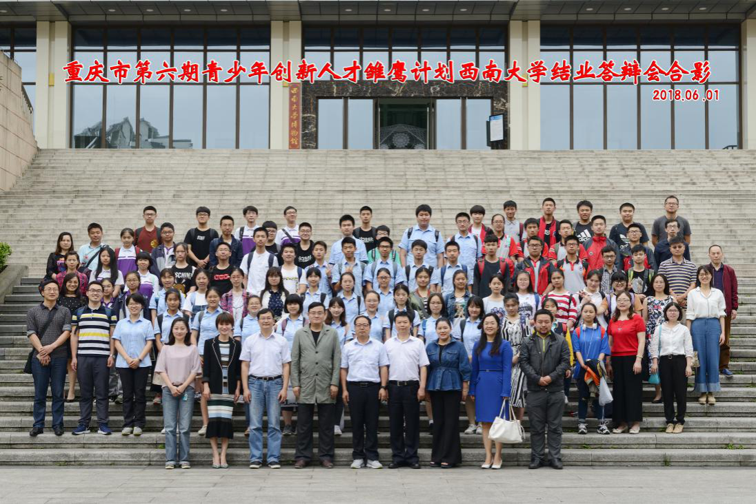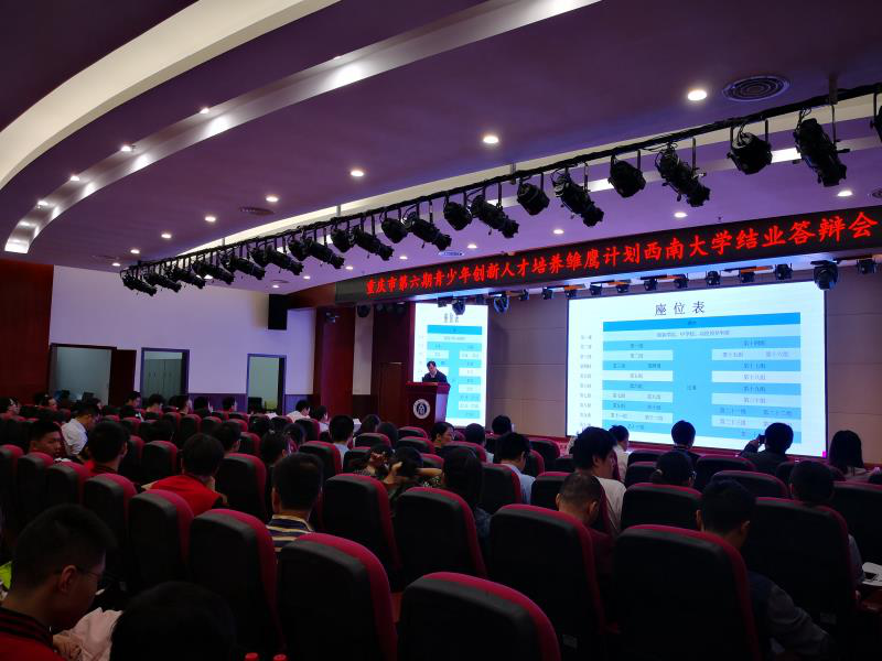 6月1日上午,重庆市第六期青少年创新人才培养雏鹰计划PA视讯官网结业答辩会在PA视讯官网校史馆多功能报告厅举行。来自南开中学、西大附中、清华中学、松树桥中学和朝阳中学的96位同学参加答辩,重庆市青少年创新学院办公室主任杨颖、PA视讯官网附属中学副校长刘其宪、以及各项目指导教师莅临答辩现场。答辩专家组由PA视讯官网校长助理周光明教授、PA视讯官网生命科学学院院长王德寿教授、重庆市科协科技服务中心青少年科技工作部副部长陈叶菲、PA视讯官网电子信息工程学院副院长王丽丹教授、PA视讯官网化学化工学院彭敬东教授组成。答辩会由PA视讯官网科学技术处副处长段书凯教授主持。